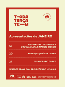 Sessão Brava na Toda Terça Tem da Casa Elefante com:Feio[CO] RUÍDOCerne+ projeções por meioLAB *20 de Janeiro, terça 19h às