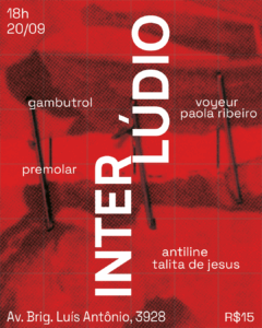 interᄂúdio com Gambutrol, Antiline+Talita de Jesus, Voyeur+Paola Ribeiro e Premolar, no lugar sem nome /SP