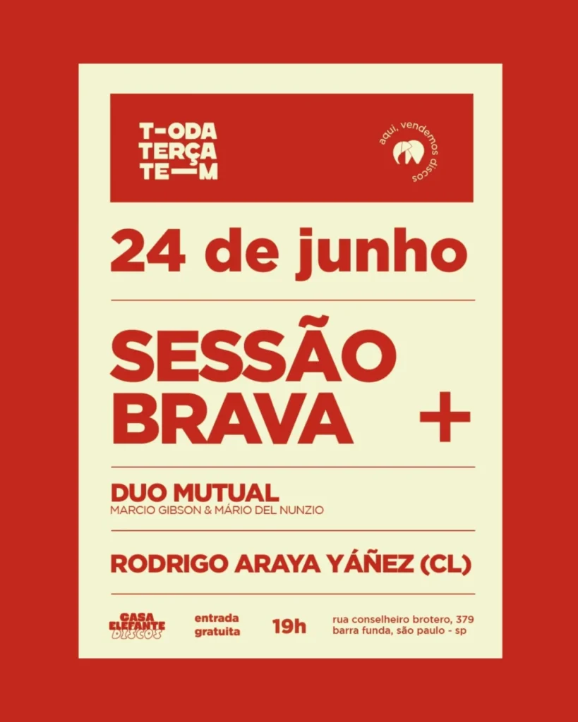 Todas as terças-feiras, das 19h às 23h, a Casa Elefante recebe um grupo/artista autoral e independente. Algumas dessas sessões foram feitas em parceria com a Brava.